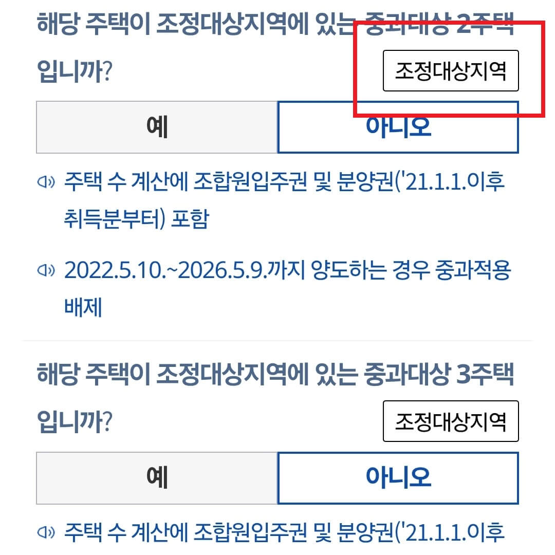 - 입력 화면 하단 ‘조정대상지역’ 항목 확인
