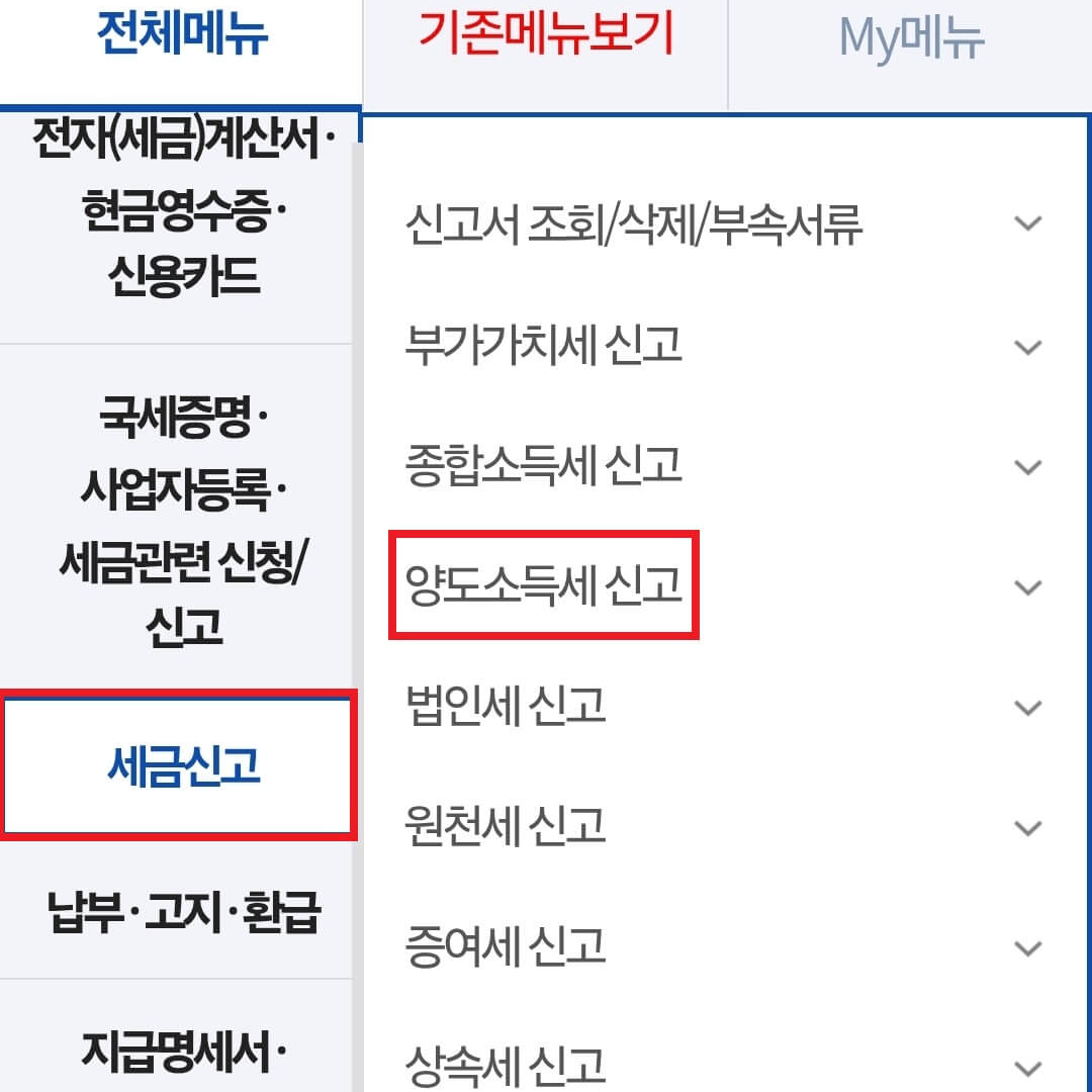지도 확인 외에도 세금 계산을 통해 간접적으로 파악하는 조정대상지역 확인방법이 있습니다. 바로 홈택스 양도소득세 간편계산 기능입니다.